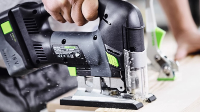 费斯托工具PSBC 420 EB-Basic电动曲线锯以精准与灵活重塑切割体验:搭载EC-TEC无刷电机实现3800次/分钟高频冲程,三重导向系统锁死划线轨迹,角度底板0-45°无级调节,配合划圆器可驾驭120mm-3000mm弧度。该曲线锯通过频闪照明与CARVEX集尘系统保持视野清晰,双侧安全锁与FastFix快换设计兼顾效率与防护。