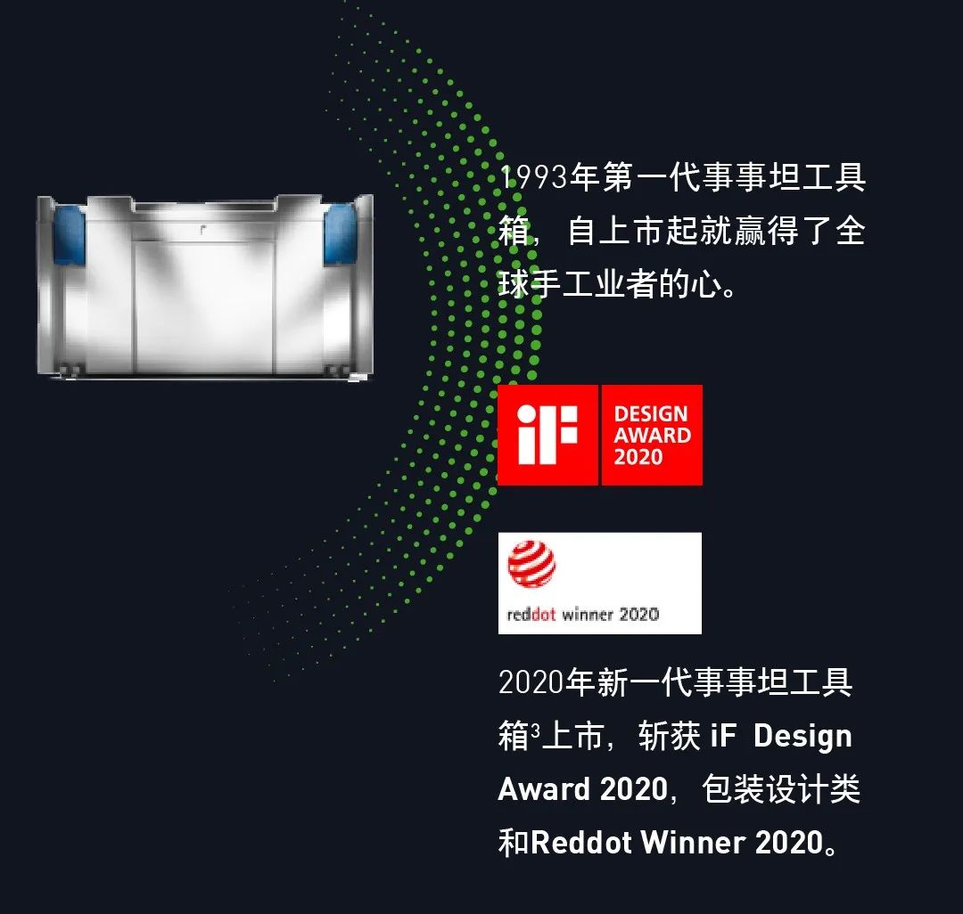 2025年,费斯托工具迎来品牌100周年庆典,届时将推出一系列纪念限量产品。首发纪念款——融合环保理念与经典设计的限量版SYS ECO 100事事坦工具箱³,正式亮相。
